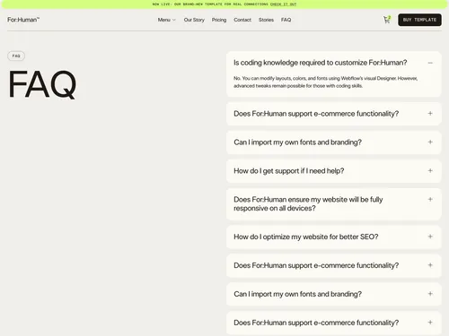 Yes. For:Human works seamlessly with Webflow’s e-commerce tools, letting you add products, manage orders, and set up secure checkout flows directly within the Designer.